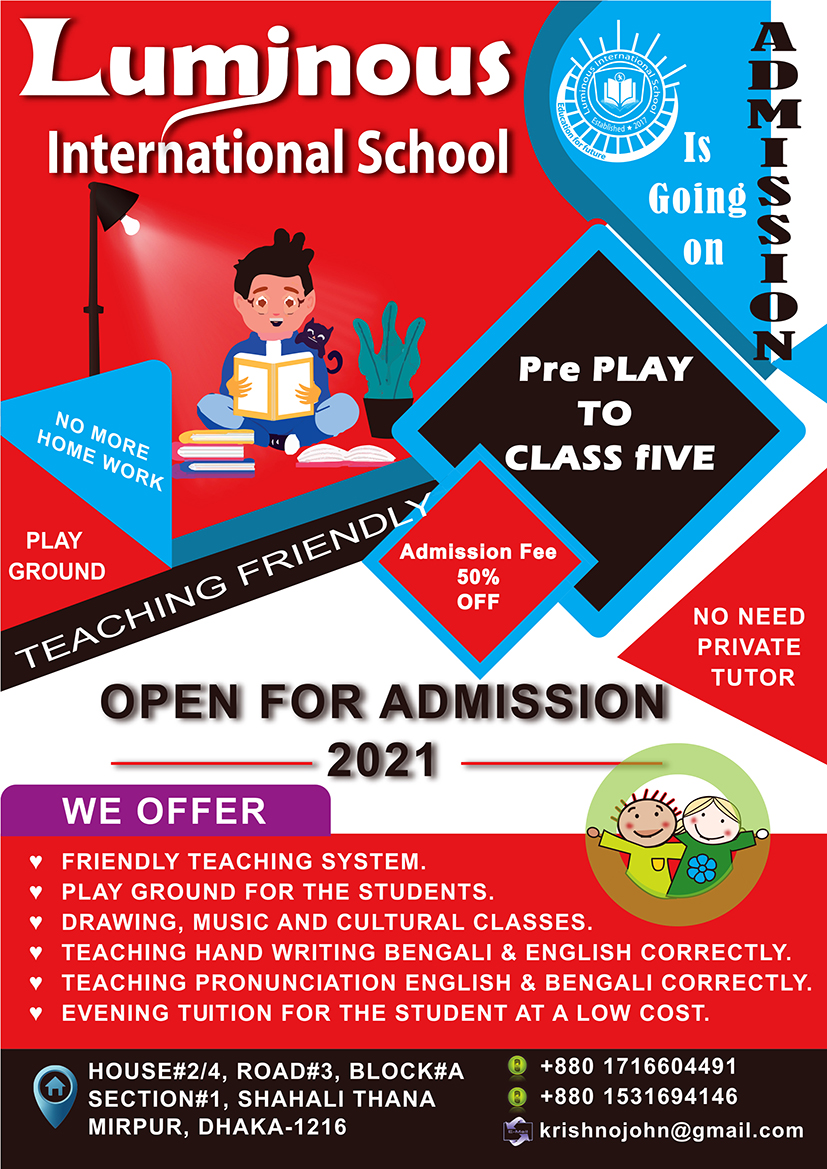 Welcome to Luminous International School. Luminous is a house of joy and wisdom. The main objective of this school is to give lessons to the children with joy and to provide an environment conducive to their real mental development. The school is always working to create freedom of thought and awaken human values along with literal education. This page will constantly highlight the school education system, the quality of education, the content of education. Thanks.... Read more